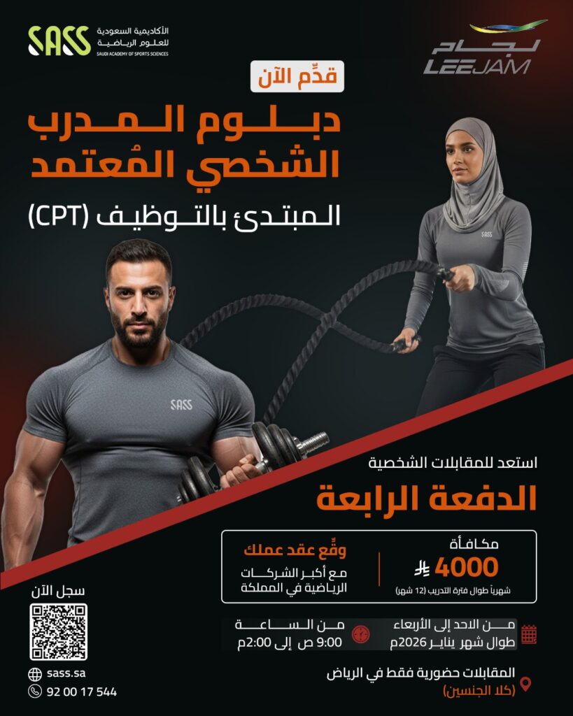 Start your professional career as a certified personal trainer at FITNESS TIME clubs. Enroll in the Certified Personal Trainer (CPT) Diploma offered by the Saudi Academy for Sports Science